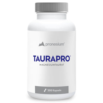 Die Tagesdosis unserer Magnesiumverbindungen liegt zwischen 150 mg und 300 mg Magnesium. Bei TAURAPRO beträgt die Tagesdosis 180mg Magnesium.